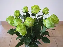 Une rose verte (Rosa chinensis Jacq. 'Viridiflora') serait née d'une mutation de Rosa chinensis, le rosier de Chine à la fin du XViie siècle. Elle a été introduite dans le commerce en Europe en 1856 par les pépinières britanniques Bembridge and Harrison.