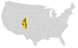 Son aire s'étend à travers les montagnes Rocheuses : de l'extrême sud du Wyoming au nord du Nouveau-Mexique. Il hiverne à plus basse altitude dans son aire de reproduction.
