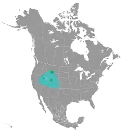 Cet oiseau réside dans l'ouest des États-Unis : à travers le sud de l’Idaho, le Wyoming et le sud-ouest du Montana ; il hiverne à plus basse altitude mais son aire déborde jusqu'en Oregon, au Nevada et au Nouveau-Mexique.