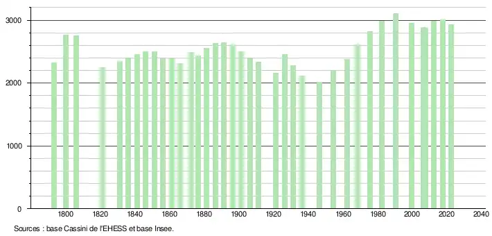 - ↑ Fiches Insee - Populations de référence de la commune pour les années 2006, 2007, 2008, 2009, 2010, 2011, 2012, 2013, 2014, 2015, 2016, 2017, 2018, 2019, 2020, 2021 et 2022.