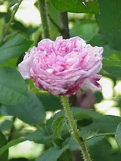 - 'René d'Anjou', Robert 1854, aux pétales roses, froissés et très serrés ;