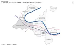 La commune se voit aussi desservir par le réseau de bus du Mantois (ex-Tam en Yvelines), due au fait que cette dernière appartient à la Communauté d'agglomération de Mantes-en-Yvelines (maintenant la communauté urbaine Grand Paris Seine et Oise depuis le 1er janvier 2016).