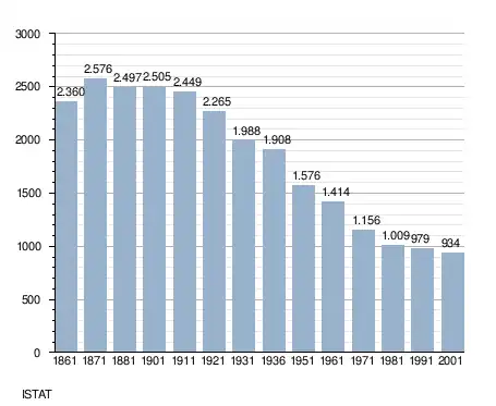 - ↑ (it) Popolazione residente e bilancio demografico sur le site de l'ISTAT.