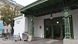 La gare de style Art nouveau a été conçue par l'architecte Otto Wagner, elle a été construite en 1900 et ouverte en 1901. La ligne a été électrifiée dans les années 1920.