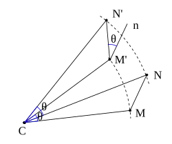 - Dans le plan orienté, la rotation de centre C et d'angle θ est la transformation qui laisse C invariant et qui transforme tout point M distinct de C en le point M' tel que