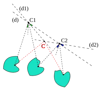 La recherche du nouveau centre et la démonstration de cette propriété s'obtient en décomposant chaque rotation en deux réflexions ayant un axe en commun. Deux rotations d'angles non nuls ne commutent que si elles ont même centre.