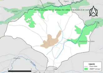 L’inventaire des zones naturelles d'intérêt écologique, faunistique et floristique (ZNIEFF) a pour objectif de réaliser une couverture des zones les plus intéressantes sur le plan écologique, essentiellement dans la perspective d’améliorer la connaissance du patrimoine naturel national et de fournir aux différents décideurs un outil d’aide à la prise en compte de l’environnement dans l’aménagement du territoire. Une ZNIEFF de type 1[Note 2] est recensée sur la commune[16] : les « prairies naturelles, bois et ruisseaux des vallées de la Justale et du Louch-Rieumajou » (487 ha), couvrant 7 communes du département[17].
