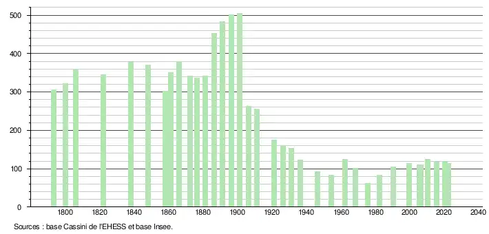 - ↑ Fiches Insee - Populations de référence de la commune pour les années 2006, 2007, 2008, 2009, 2010, 2011, 2012, 2013, 2014, 2015, 2016, 2017, 2018, 2019, 2020, 2021 et 2022.