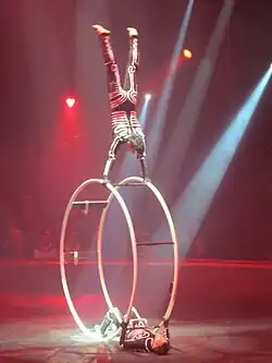 Une roue allemande est un accessoire de gymnastique circulaire auquel l'artiste s'accroche à l'aide de ses pieds et de ses mains. Cet objet est proche de la roue Cyr, à la différence près que la roue allemande possède deux anneaux[1].