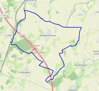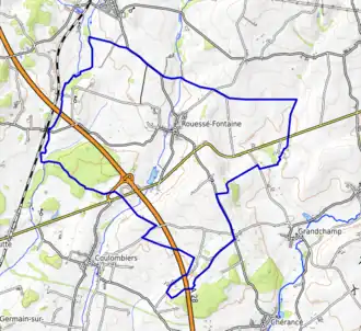 - ↑ « Orthodromie entre Rouessé-Fontaine et 0 », sur fr.distance.to (consulté le ).