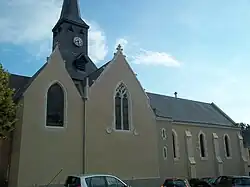 - Destruction de la nef romane et ajout de bas-côtés néogothiques et en 1902, amputation d'une travée, pour élargissement de la route.