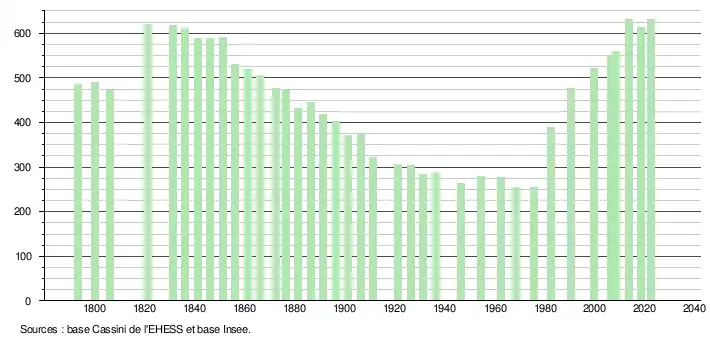 - ↑ Population municipale de référence en vigueur au 1er janvier 2025, millésimée 2022, définie dans les limites territoriales en vigueur au 1er janvier 2024, date de référence statistique : 1er janvier 2022.