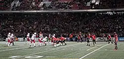 - ↑ Stéphane Cadorette, « Foule et botté records: victoire in extremis du Rouge et Or face aux Carabins : Laval l'emporte 23-22 contre les Carabins », sur journaldequebec.com, (consulté le )