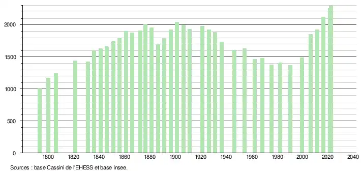 - ↑ Fiches Insee - Populations de référence de la commune pour les années 2006, 2007, 2008, 2009, 2010, 2011, 2012, 2013, 2014, 2015, 2016, 2017, 2018, 2019, 2020, 2021 et 2022.