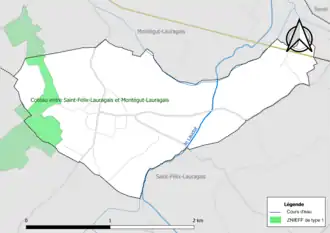 L’inventaire des zones naturelles d'intérêt écologique, faunistique et floristique (ZNIEFF) a pour objectif de réaliser une couverture des zones les plus intéressantes sur le plan écologique, essentiellement dans la perspective d’améliorer la connaissance du patrimoine naturel national et de fournir aux différents décideurs un outil d’aide à la prise en compte de l’environnement dans l’aménagement du territoire. Une ZNIEFF de type 1[Note 2] est recensée sur la commune[15] : le « coteau entre Saint-Felix-Lauragais et Montégut-Lauragais » (114 ha), couvrant 3 communes du département[16].