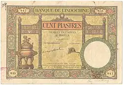 Billet de 100 piastres indochinoise |
