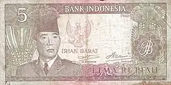- ↑ (en) 5 rupiah - Irian Barat recto/verso, notice sur Banknote.ws.