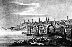 - ↑ Michael J. Quin, A Steam Voyage down the Danube. With Sketches of Hungary, Wallachia, Servia, and Turkey (1835) ; traduction française de Jean-Baptiste Eyriès intitulée Voyage sur le Danube : de Pest a Routchouk, par navire a vapeur, et notices de la Hongrie, de la Valaquie, de la Servie, de la Turquie et de la Grèce, Paris, Arthus Bertrand, libraire-éditeur, 1836, pp. 277-278 (lire en ligne).