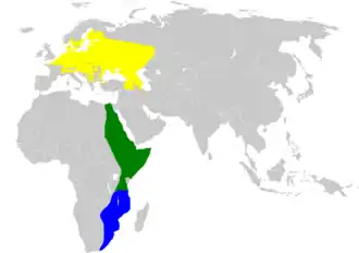 Cet oiseau se reproduit en Europe occidentale (France, Belgique...), centrale, orientale et dans l'ouest de l'Asie. Ce migrateur séjourne en Afrique centrale et australe à partir de la fin de l'été pour revenir en Europe en avril-mai. Contrairement à la plupart des migrateurs de l'Europe centrale, il utilise essentiellement le chemin migratoire oriental, traversant le Bosphore, Israël et l'Égypte. Cela lui évite de franchir le Sahara.