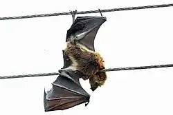 Roussette noire électrocutée, comme tant d'autres, dans le parc national de Black River Gorges, île Maurice.