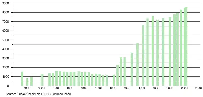 - ↑ Population municipale de référence en vigueur au 1er janvier 2025, millésimée 2022, définie dans les limites territoriales en vigueur au 1er janvier 2024, date de référence statistique : 1er janvier 2022.