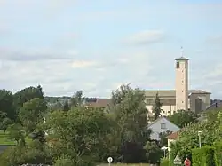 - Église paroissiale Saint-Denis, construction XVe ou XVIe siècle, détruite en 1856 ; reconstruite en 1856, détruite en 1941 ; reconstruite de 1953 à 1956 d'après des plans de l'architecte Roland Martinez. Crypte, autel et six statues-reliquaires XVIIIe siècle ; vitraux XXe siècle de Barillet, sculpture contemporaine de Philippe Kaeppelin.