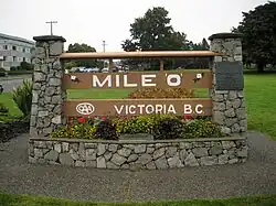 Au sud de la capitale provinciale, Victoria, se trouve le terminus ouest de la route 1. Ce point est également le terminus ouest de l'axe principal de la route transcanadienne. Il est situé à l'intersection des rues Douglas et Dallas dans l'extrême sud de l'Île de Vancouver. De ce point, la route transcanadienne parcourt un peu moins de 8 000 km (4 971 mi) jusqu'à Saint-Jean de Terre-Neuve.