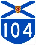 - Sections actuelles des routes 104 et 4, en traversant le détroit de Canso sur la Canso Causeway, et dans Port Hawkesbury
