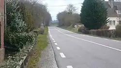 La RN 29, actuellement déclassée en RD 929, à l'entrée est du plateau du Pays de Caux (Bourdainville, Varvannes - Val-de-Saâne). | ||