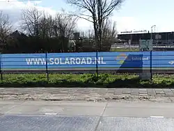 - ↑ (en) Sten de Wit, Soraya Rosa Saenz et Jannemieke van Dieren, « SolaRoad opens: The first road in the world that converts sunlight into electricity is ready for use » [PDF], sur SolaRoad,