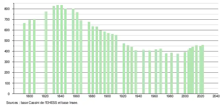 - ↑ Fiches Insee - Populations de référence de la commune pour les années 2006, 2007, 2008, 2009, 2010, 2011, 2012, 2013, 2014, 2015, 2016, 2017, 2018, 2019, 2020, 2021 et 2022.