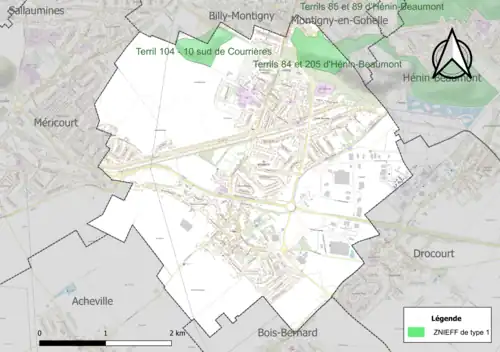 - ↑ « ZNIEFF 310030117 - Terril 104 - 10 sud de Courrières », sur Le site de l'Inventaire national du patrimoine naturel (consulté le ).