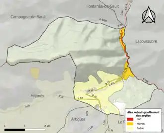 Les mouvements de terrains susceptibles de se produire sur la commune sont soit des chutes de blocs, soit des glissements de terrains, soit des mouvements liés au retrait-gonflement des argiles. Près de 50 % de la superficie du département est concernée par l'aléa retrait-gonflement des argiles, dont la commune de Rouze[42]. L'inventaire national des cavités souterraines permet par ailleurs de localiser celles situées sur la commune[43].