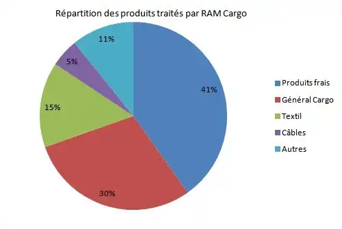 Royal Air Maroc Cargo réalise 20 000 tonnes de fret par an soit 40% du marché au Maroc qui est dominé par le leader mondial DHL[49]. Royal Air Maroc détient un seul Boeing 737-300F cargo qui lui permet d'acheminer 5 000 tonnes de fret soit 25% de son activité, le reste est transporté en vols mixtes ou en affrétant en wet lease des 767-300F à la demande. Depuis 2014 Royal Air Maroc a lancé des lignes régulières tout cargo[50] vers Dakar ainsi que vers trois autres capitales des pays du sahel qui n'ont pas accès à la mer à savoir Bamako, Ouagadougou et Niamey. En vertu d'un accord signé entre RAM et l'Association Marocaine des Exportateurs (ASMEX) les entrepreneurs marocains bénéficient de réductions allant de 25 à 40% sur leurs frais d'export de produits manufacturés et de 20% pour les produits périssables[51].