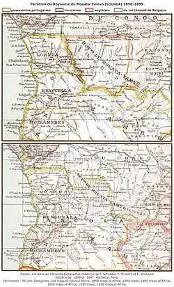 Vers 1880, les Chokwe prirent pour un temps le contrôle de l’empire, mais bientôt les puissances coloniales intervinrent. Les troupes portugaises entrèrent depuis l’Angola en 1884. Lors de la Conférence de Berlin (1884-1885), la région fut pré-partagée entre l’Angola portugais (Lunda Norte, Lunda Sul et Moxico), le Congo sous contrôle belge et la Zambie britannique (Kazembe-Zambèze). La capitale (c'est-à-dire le conseil impérial, l’empereur et sa cour) déménagèrent alors à Musumba (« le campement » en ruund, aujourd’hui ville de 100 000 habitants du Katanga au Congo-Kinshasa). Le Katanga ne fut soumis à son tour qu’en 1909, après la capture et l’exécution des chefs de guerre qui résistaient contre la colonisation (qualifiés de « rebelles »). La tentative d’indépendance du Katanga au début des années 1960 fut impulsée par Moïse Tshombe, frère du Mwant Yav Mushid III. À cette époque, le parti conakat recrutait essentiellement chez les Lundas. Depuis, l’empire Lunda est devenu un royaume coutumier, dont le souverain actuel est le 28e Mwant Yav, nommé Kaumb II (dans le civil Benjamin Kaumb Diur Tshombe Sashilemb, avocat)[5]. Les Lundas vivent toujours au Katanga, en Angola oriental et en Zambie septentrionale. Les descendants du groupe fixé au Kazembe sont nommés « Lundas orientaux ».