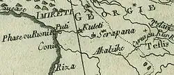 - ↑ D'après les diplomates vénitiens médiévaux Giosafat Barbaro et Ambrogio Contarini, ces trois villes sont dépendantes du dux de Mingrélie, qui lui-même sert le roi occidental.
