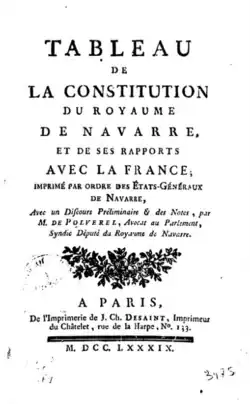 - Étienne de Polverel, Tableau de la constitution du royaume de Navarre, et de ses rapports avec la France ; imprimé par ordre des États-généraux de Navarre, Paris, (lire en ligne).