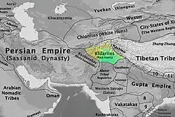 Les Kidarites (ou Huns rouges), proches des Sassanides, s'installent dans le nord du Pendjab, au sud de l'Hindou Kouch, dans la région de Kaboul-Gandhara, entre 380 et 430.