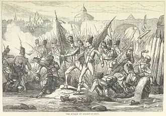 Échec de l'attaque britannique à Berg-op-Zoom en mars 1814, gravure britannique, 1873.