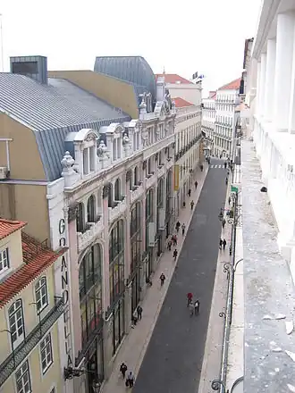C'est l'une des rues centrales du Chiado et d'une grande importance commerciale. En plus des commerçants établis de longue date, on y trouve des succursales de chaînes de vente au détail internationales. La passerelle de l'Elevador de Santa Justa traverse la rue. Après l'incendie du Chiado du 25 août 1988, qui détruisit plusieurs bâtiments du XVIIIe siècle, un déclin s'amorça. Dans les années 1990, la reconstruction du quartier a été conduite par l'architecte Alvaro Siza[2].