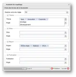 Affichage de contenus en fonction de leur classement : la taxonomie permet également de gérer des filtres sur les contenus pour leur remontée dans les blocs (par exemple : liste d’actualités ayant trait aux transports concernant les étudiants), ou de créer des liens automatiques de navigation par rebond (autres actualités ‘Emploi’) ou par nuage de tags. Par la création de listes de contenus, Rubedo propose un assistant pour créer des requêtes à partir de cette classification par taxonomie.