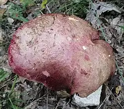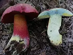 Le Bolet vieux rose (Imperator rhodopurpureus), qui présente une forte teinte bleu foncé lorsqu'il est coupé ou même lorsqu'il est manipulé sur toutes les surfaces, de telle sorte qu'il devient entièrement noir en cas de manipulation intense[1]. Toxique.