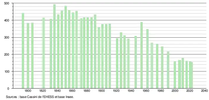 - ↑ Population municipale de référence en vigueur au 1er janvier 2025, millésimée 2022, définie dans les limites territoriales en vigueur au 1er janvier 2024, date de référence statistique : 1er janvier 2022.