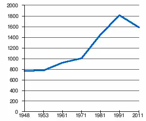 - 1 2 (sq) « Évolution de la population 1948-2011 », sur pop-stat.mashke.org (consulté le ).