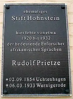 Prietze rentre en Allemagne en 1914 et passe finalement son doctorat en 1916. Après son retour, il enseigne à la Deutschen Kolonialschule für Landwirtschaft, Handel und Gewerbe (École coloniale allemande d'agriculture, de commerce et d'artisanat) à Witzenhausen[18]. Il passe ses dernières années à la maison de retraite Stift Hohnstein dans le quartier Hasserode de Wernigerode, dans le Harz. Il décède le 6 mars 1933 à Wernigerode. Une plaque commémorative est apposée en 2004 à l'ancien couvent de Hohnstein, dans cette même ville[19].