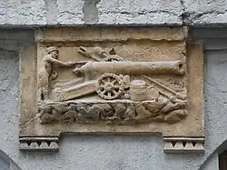Au no 10, une enseigne de 1624 « le Canon d'or » est encastrée dans la façade[4].