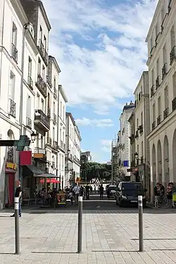 Avant les travaux de comblement de la Loire, dans les années 1920 et 1930, cette artère permet de faire la transition entre deux ponts. Au nord, le « pont de la Poissonnerie » (succédant au « pont d'Aiguillon ») franchissait le « bras de la Bourse » pour rejoindre la rue de la Paix, sur la rive droite[2] ; au sud, le « pont de la Belle-Croix » franchissait le « bras de l'Hôpital » pour atteindre la chaussée de la Madeleine, à l'est de l'île Gloriette[3]. C'est, pendant des siècles, le seul axe routier qui permette de franchir la Loire entre le cœur de la « Cité des Ducs », formé par l'actuel quartier du Bouffay, et le faubourg de Pirmil, sur la rive gauche.