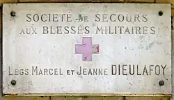 - No 12 : hôtel Dieulafoy construit par Joseph Vaudremer en 1895 pour son ami l’archéologue Marcel Dieulafoy[6]. La Revue illustrée en donne, le , la description suivante : « Après avoir gravi un escalier de bois sculpté, on arrive au superbe salon du premier étage dont le principal ornement est une cheminée gothique monumentale. Et partout ce ne sont que meubles rares, vases précieux et bibelots étranges qui rappellent les civilisations passées ; le cabinet de travail de Mme Dieulafoy est particulièrement élégant avec ses tentures de velours bleu sur lesquelles se détachent les riches reliures qui ornent sa bibliothèque. C’est dans cet hôtel délicieusement orné que, chaque dimanche, se donne rendez-vous tout ce que Paris compte de célébrités mondaines, artistiques et scientifiques »[7]. En 1920, à la mort de Marcel Dieulafoy, l'hôtel est légué à la Société de secours aux blessés militaires (SSBM), future Croix-Rouge française. Il est actuellement le siège de la Délégation territoriale de Paris de la Croix-Rouge française.