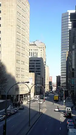 C’est une des rues les plus étroite du centre-ville, mais aussi une rue de grand contraste car parfois bordées d’habitations à deux étages, parfois en marge des plus hauts gratte-ciel de Montréal[4].