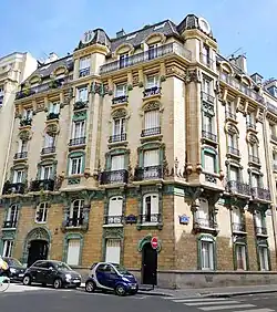 - Nos 5-7 (angle villa Eugène-Manuel) : immeuble de style Art déco construit en 1926 par l’architecte Henri Dubouillon, signé en façade[3].